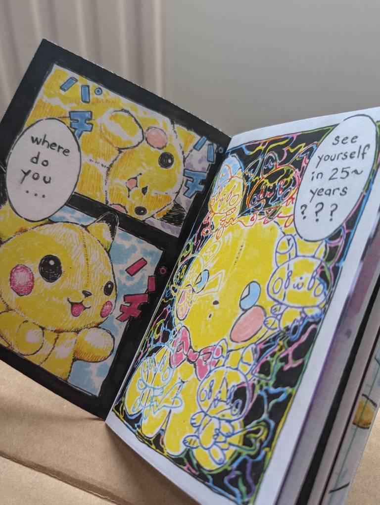 full color 32 page zine that's approximately 3.25"x4.75"(8.3x12.1 cm)